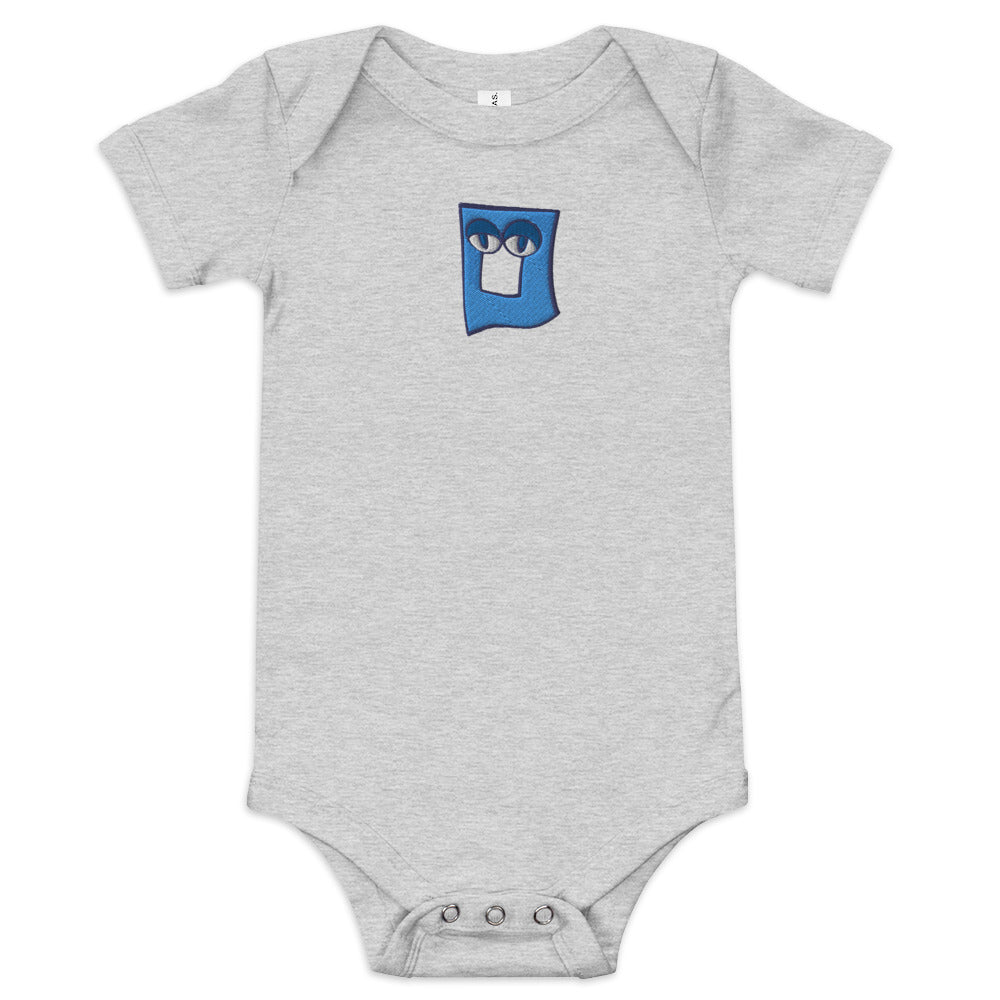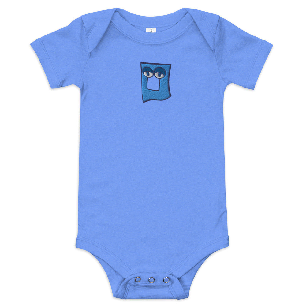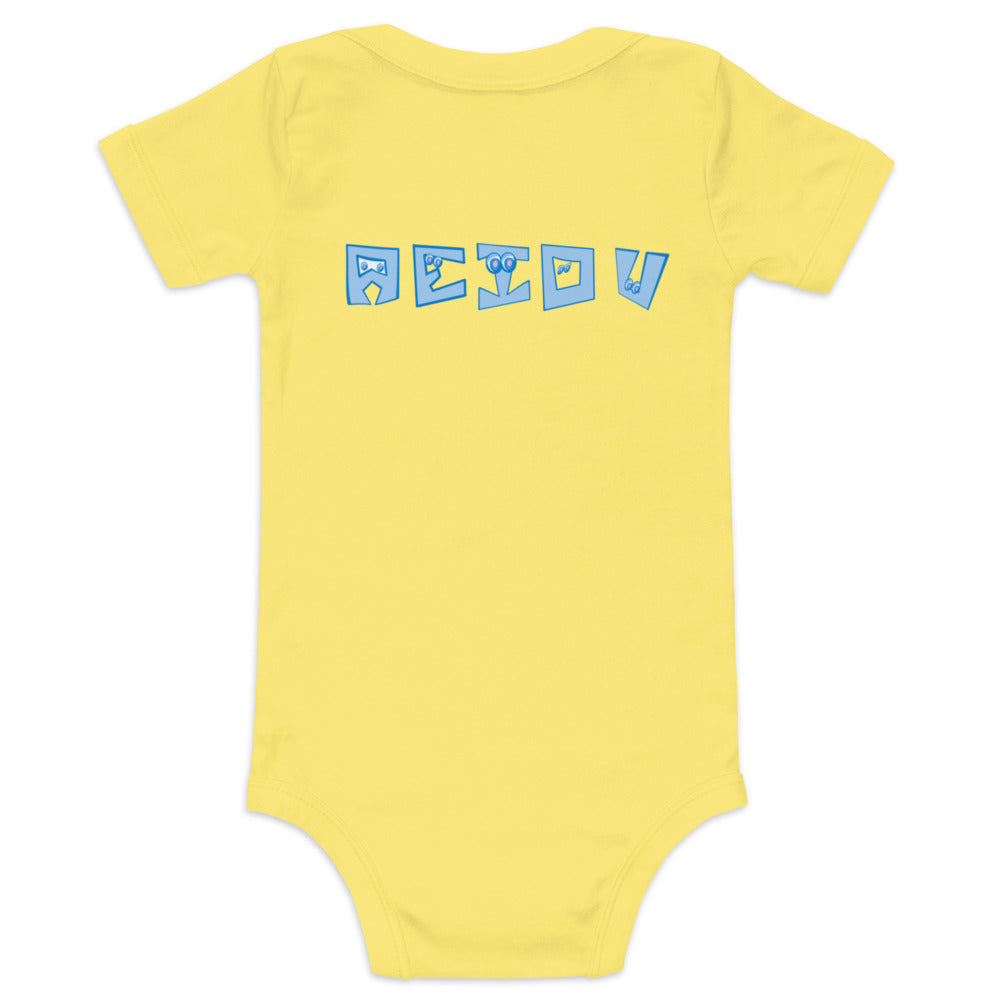 AEIOU Blue Embroidered "O" Baby short sleeve one piece